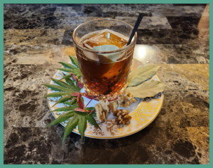 - Add a bay leaf in the drink; this is both as garnish and to change the flavor over the time the drink is consumed