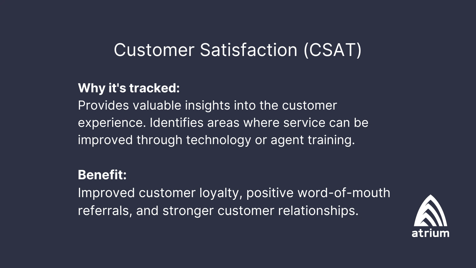 CSAT measures how satisfied customers are with the contact center. This is often measured through surveys, feedback forms, and/or AI-driven call analysis.