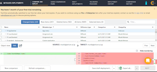 The type of metadata that needs to be compared can be customized and saved for later purposes. There are some standard filters already available by default which can be leveraged based on the comparison needs. You can also change the version of the metadata API used in comparison, which helps in overcoming the errors as a result of new metadata support introduced in the latest release, but not present in the version of metadata you are comparing.