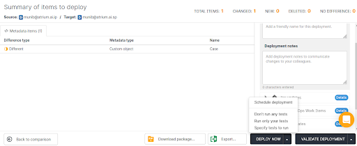 The validated packages, the deployment history, and comparison history are all saved in the Gearset. If somebody has already compared a package, validated it and later came to know a pre deployment step which needs to be done before deploying the metadata, he/she can do that first and can then proceed to the deployment without doing the comparison again. They just need to select the last comparison done and proceed with the next screens.
