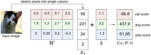- Xi is all of its pixel values flattened out in single column (let’s suppose you have an image whose length is 32px and width is 32 px and it consists of three-layer RGB so the total dimension of Xi is 1×32*32*3).