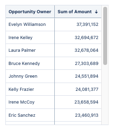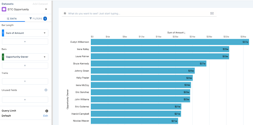 Start by creating your leaderboard in a lens. For this tutorial, we are using the DTC Opportunity Dataset in a Salesforce Developer Org.