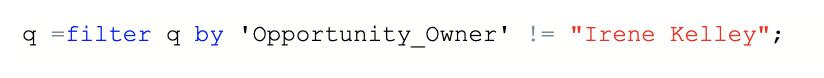 Lastly, we need to add in our exclude “Irene Kelley” filter. Paste this up in line 3:
