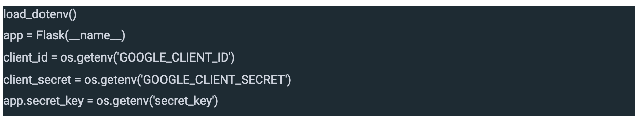 Note: Do not store the GOOGLE_CLIENT_ID and GOOGLE_CLIENT_SECRET in a publicly-accessible location. In addition, if you share the source code to your application — for example, on GitHub — store them in an environment file and add that environment file in .gitignore to avoid inadvertently sharing your client credentials.