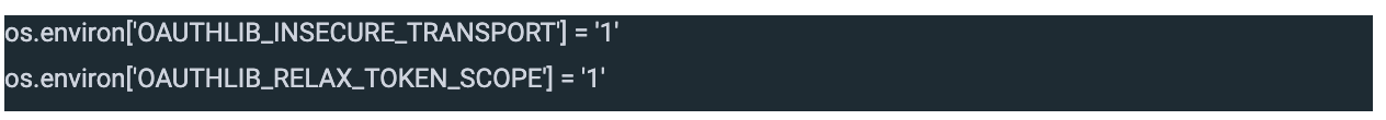 - You must set the OAUTHLIB_RELAX_TOKEN_SCOPE environment variable to account for Google changing the requested OAuth scopes.