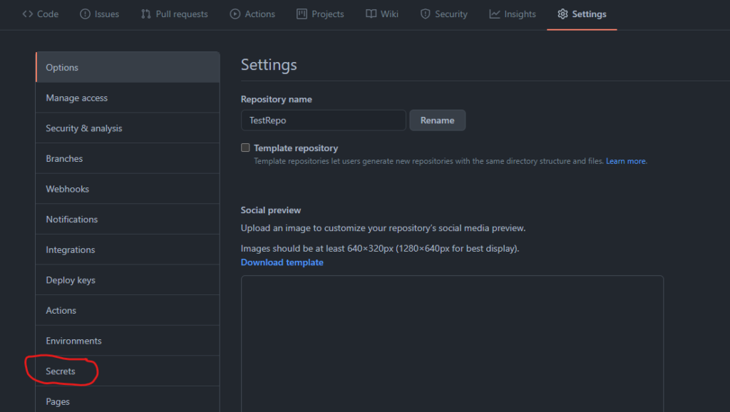 Now you need to store this information in the secrets folder of your GitHub repository (Settings > Secrets) so that it is private.