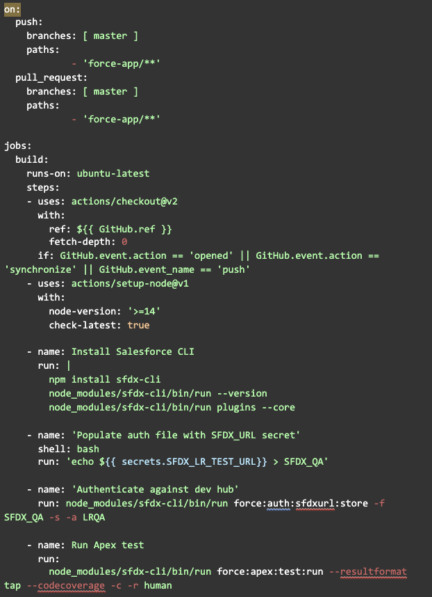 We can see that in our case, on every push and pull request to the master branch, our workflow will authorize an org, run all the test classes, and deploy our changed code to that org if everything works out. This saves developers time and effort since all these things would otherwise need to be done manually. Plus, GitHub Actions provides your project with a version control system. This also helps with debugging, since troubleshooting is way easier when issues are caught early. All this time and effort can be used in other departments of the software development lifecycle.