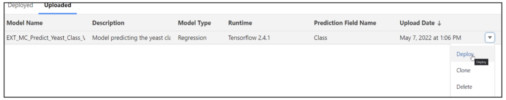 Select the model and click Deploy.