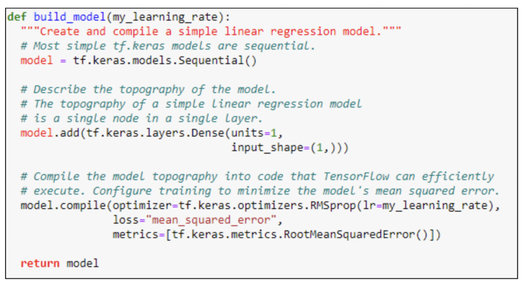 Regression Models – We use regression models to predict a continuous dependent variable. Predicting the total amount of sale, the cost of shipping, the time taken to close a case, etc. are all common regression problems in the CRM world. Here we solve a simple regression problem predicting the price of a house using the Keras sequential model. For this regression problem, we use the RMSprop optimizer and Mean_Squared_Error loss function.