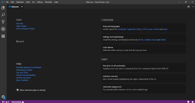 You can download the latest version of VS Code here. After installing it, you will see a screen as shown below: