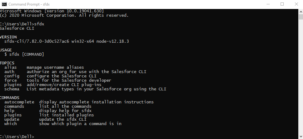 With that being said, go here and download the SFDX CLI for your operating system. To check if the SFDX CLI is installed correctly, go and run the sfdx command in your terminal. Something like this should appear in your terminal window: