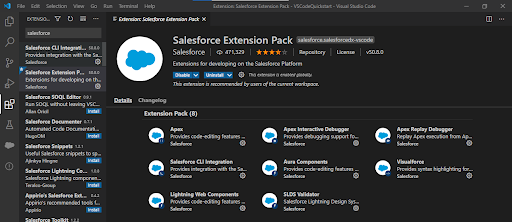 The best part is that Salesforce comes with its own extension pack for VS Code to make the IDE Salesforce ready. The pack comes with a set of eight extensions which can all be downloaded and installed in your IDE with a single click. We’ll talk about each of them.