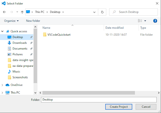 Next, we have to specify the name for our project and select the location to save it when prompted.