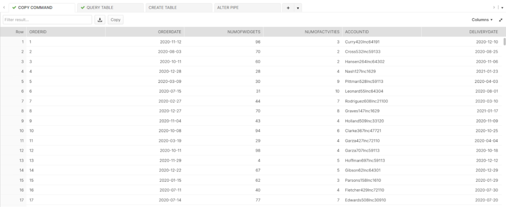 COPY INTO order_t FROM @magentaorders/WidgetOrders.csv
