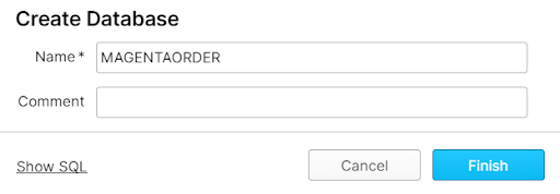 Before loading the data from AWS to Snowflake, Jake must establish a location for Magenta’s order data. He creates the MAGENTAORDER database through Snowflake’s user interface but copies the SQL code in case he ever wants to create a database from a Worksheet.