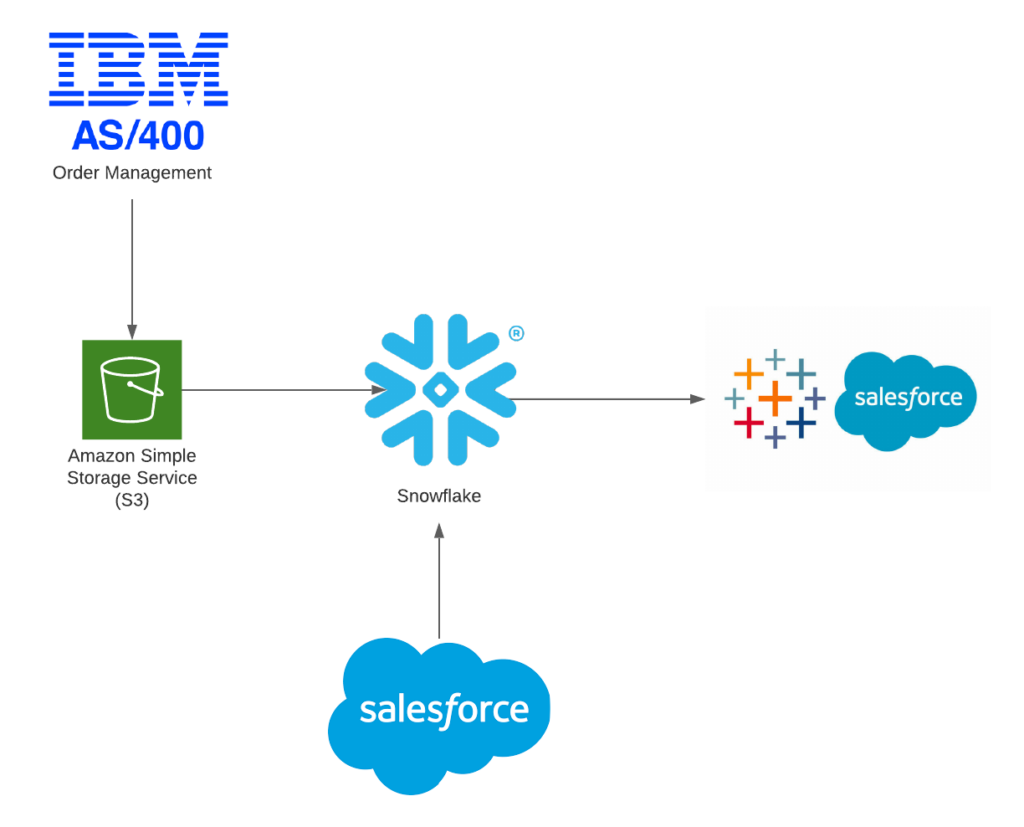 Jake’s goal as Senior Data architect was to bring Elaine’s order data to Salesforce to give her a holistic view of her customers. Jake decided to use Snowflake as a data hub, bringing in data from AS400 via AWS. While Elaine is ecstatic to have order data in Salesforce, she needs an easy way to consume and interact with this information. In part 4 of this series, we’ll investigate how to use Tableau for CRM as a system of engagement for your sales teams.