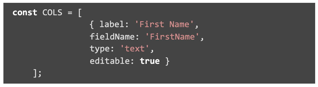 - Set Editable to true: If we are editing a single column or multiple columns, we need to apply this. Set editable to true for the column name(s) that you want to edit.