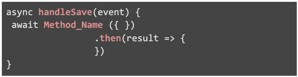 - Use handleSave()- This is used to save the data successfully. After this, it dispatches to the next step. When the user clicks outside the cell after updating the record, a datatable footer appears with a Cancel and Save button.