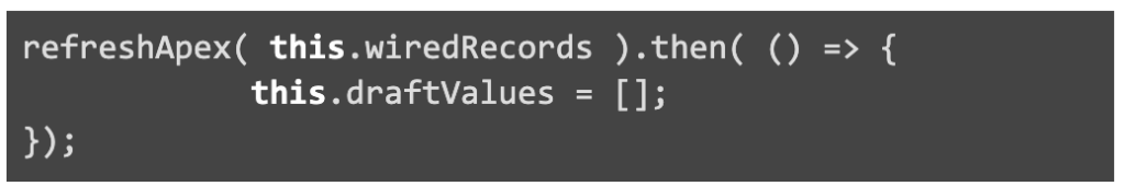 - refreshApex(): This displays the fresh data into a datatable just like entering the new data and saving it. After refreshing the page, the updated data will appear.