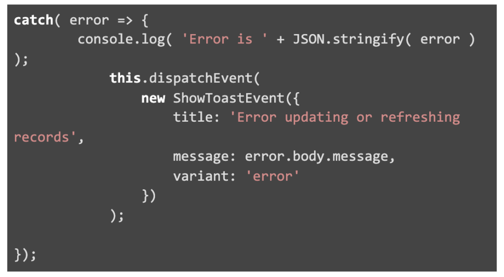- ShowToastEvent(): This plays a very important role because after successfully saving the updated data, this method displays a success message. It is beneficial to show a message that lets us know about the updated record.
