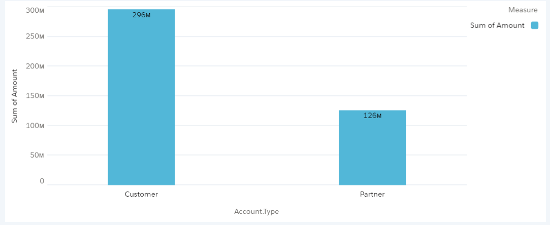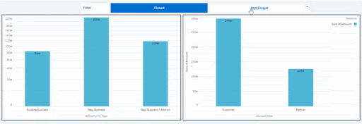 Step 1: In the image below, we have the sum of Amount grouped by Account Type with filter applied on Forecast Category == “Closed.”