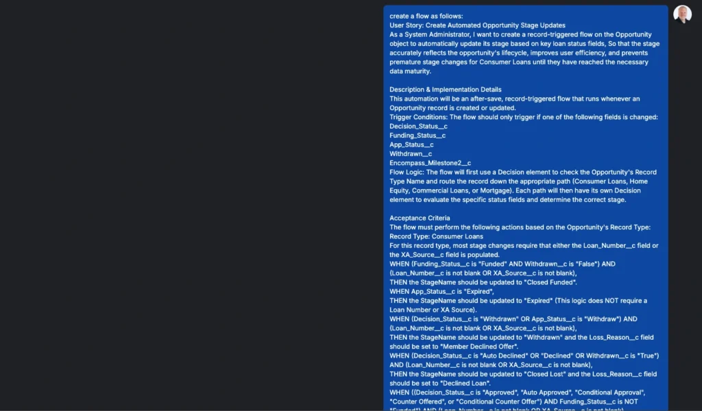 In this blog, I’ll walk through a recent use case where I wanted to demonstrate to a partner the power of Andi using a story from their backlog. The story focused on making significant changes to a complex Salesforce Flow. However, I didn’t have direct access to their environment. I turned to my two favorite AI tools — Andi and Gemini — to rapidly set up the scenario and complete the development. The customer had estimated that the story would take about 14 hours of development time; I was able to complete everything in under an hour.