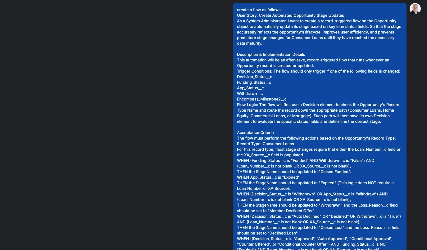 I was floored. In 30 minutes, I’d added several custom fields and created a complex Flow with 27 different decision points, that was more than 90% correct.