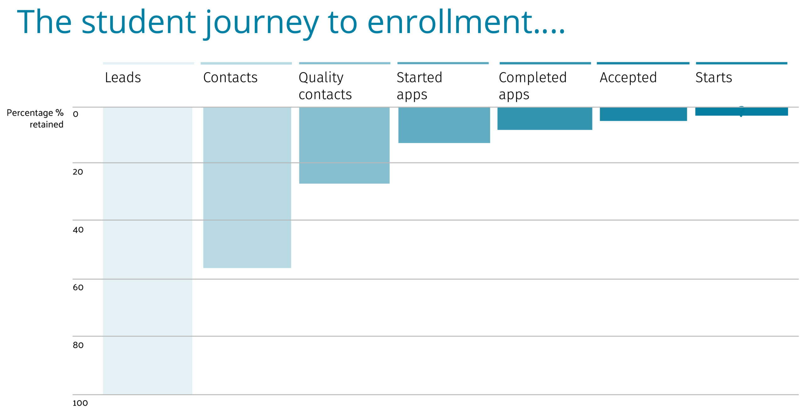 So then what’s next? Insights from one school don’t generally transfer to other schools. Your students are a unique blend of backgrounds, motivations and behaviors. As more programs lean towards online delivery, student needs are going to change. Processes for acquiring leads, encouraging and enabling potential students to apply, and identifying optimal tracks/programs for students to succeed may differ substantially based on student characteristics and institutional goals. Supporting them with differentiated, data-driven strategies not only builds in efficiencies to the school’s workflow, but also saves students valuable time and patience in their journey.